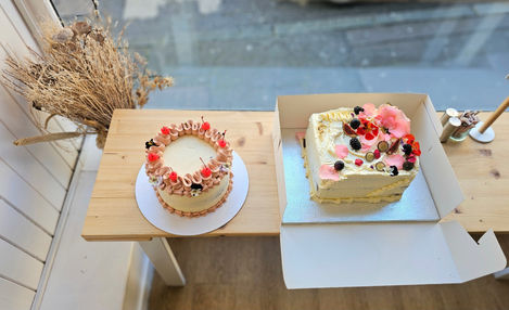 Yes, we do wedding cakes! Although we don`t do fondant and traditional wedding cakes, we love creative and/or simple wedding cakes! Whether it is a small cake for 20 people, a tiered cake for 90 or several individual cakes all different shapes, flavours and decoration styles - we are so here for them!